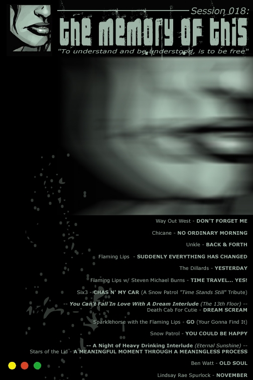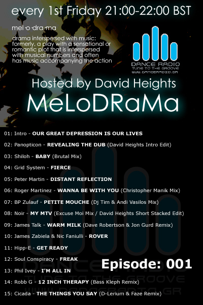 ===================================================== Session 007: REARRANGE THE TRAVESTY Genre of Choice this Week: Progressive Breaks / Progressive & Deep House Tracklisting: 01: B.P. Zulauf - DA VINCI CODE (Anistropic Breaks Mix) 02: Simuck & Andrew K - MAR DE ORO (Ray Calman Breaks Mix) 03: Tiefschwarz Feat. Tracy Thorn - DAMAGE (M.A.N.D.Y Remix) 04: Rouzbeh Delavari - ABOUT YOU 05: Allan Shine - FAR CRY A Call Would of Been Nice MID-TRO 06: Stan Kolev - RUNAWAY (Neil Kolo Dub Mix) 07: Darren Duvall - MY CONTROL 08: Art G & Justin Xara - SEPTEMBER RAIN ===================================================== Session 006: SIX OR SEX OR BOTH? Right Click and Save As 01: ONE DJ YOU DON'T WANNA FUCK WITH (Intro) ===================================================== Alot of chick emails recently requesting several songs from past mixes i done... so this week i compiled a mix of chicks and beats for you all to enjoy. Right Click and Save As 01: Deepsky - TALK LIKE A STRANGER (Future Perfect Mix) 02: Way Out West feat. Kirsty Hawkshaw - STEALTH (NuBreed Remix) 03: Soultan & Tonedepth ft. Heroic - BACK TO YOU (MV's Back 2 Breakz Mix) 04: Avril Lavigne - I'M WITH YOU (Leama and Moor Dub) 05: Way Out West - MELT 06: Lustral - EVERYTIME (Red Jerry Mix) 07: Tiff Lacey - ALWAYS (Floris de Haan Mix) 08: Carrie Skipper - TIME GOES BY (Floris de Haan Mix) ===================================================== Right Click and Save As 01: Kind of Zero - FAVOURITE TRAIN (Breaks Mix) 02: The Beatles - JUST BECAUSE (Shiloh's Just for Annie Remix) 03: Shiloh feat. LP - ALL THOSE THINGS 04: Mike Acosta - AGAIN (Mike Acosta Synthetic Break Mix) 05: Kind of Zero - FEATURELESS PERSON 06: Rob Curtis - TWILIGHT (Damien Heck's Break Mix) 07: Alex Steathy - ONCE (Delikate Imposter's Breaks Mix) 08: Andro & Snake Sedrick - CINNAMON (Yvel Tristan Remix) 09: Retroid - MEMORIES 10: Risky Business WTF?!? (Outro) 11: Terre's New Wuss Fusion - LOVE ON A REAL TRAIN (Risky Business Remix) ===================================================== Right Click and Save As AFK - ECLIPSE Jaytech - ENGAGE (Jeff Devas Compressor Remix) Tilt - NEW DAY (Traffik_Break_of_Day_Dub) Imogen Heap - HIDE & SEEK (R3volve's Lost & Found Mix) DJ Paul & Stuart - SATURN 12 Saskia - THE ONE (Futureperfect's Sauce Kia Mix) Matt Garland - JUST FOR YOU Oasis - WONDERWALL ===================================================== WEEKLY MIX Right Click and Save As 01: Off Mind - ETERNAL NIGHT 02: Martini & Micali - BOUNDLESS (MV's Hazy Daze Remix) 03: Ray & Peter - SONIC ALCHEMY 04: Ray Calman - KASHMIR (Simuck's Breaks Mix) 05: Desert Dwellers - MUSIKI UKABILI (AFK's Moon Over Myakka Remix) 06: David Heights & Agent Sixty-Three - WALK WITH A SMOOTH CRIMINAL 'MASHUP' 07: Xplore - SILVER LIQUID ===================================================== WEEKLY MIX Right Click and Save As 01: Regis - Solution [Voice] (Original) 02: Panopticon - Revealing The Door (Sean Quinn & Dan Mangan Remix) 03: Union Jack - Two Full Moons And A Trout (Luke Chable Mix) 04: Karen Overton - Your Loving Arms (Royal Two Remix) 05: Kenneth Thomas - The Orange Room (Nick Warren Mix) 06: AFK - Lush (Matt Rowen & Jaytech Remix) 07: Summer of Space - Calling After Us (Flatcracker Mammal Bus Remix) 08: Deep Dish feat Stevie Nicks - Dreams (Extended Mix) ===================================================== ===================================================== David Heights - Unlimited Supply Vol 1: Non-stock items ===================================================== David Heights - NO PAPERTRAIL VOL 1: One last go around TRACKLISTING: ===================================================== David Heights - NO PAPERTRAIL VOL 2: To and From and Back Again ===================================================== David Heights - PROGRAMMED TO FEEL (Program Error #063) ===================================================== Six3 aka David Heights - EMOLESSCHASGRESSIVE ===================================================== Agent Sixty-Three vs David Heights - Assassination 01: I Don't Feel Safe ===================================================== David Heights - WHAT IS KNOWN TO ACTUALLY BE SO ===================================================== Main l Weekly Mix l Archive Mixes l Contact |
